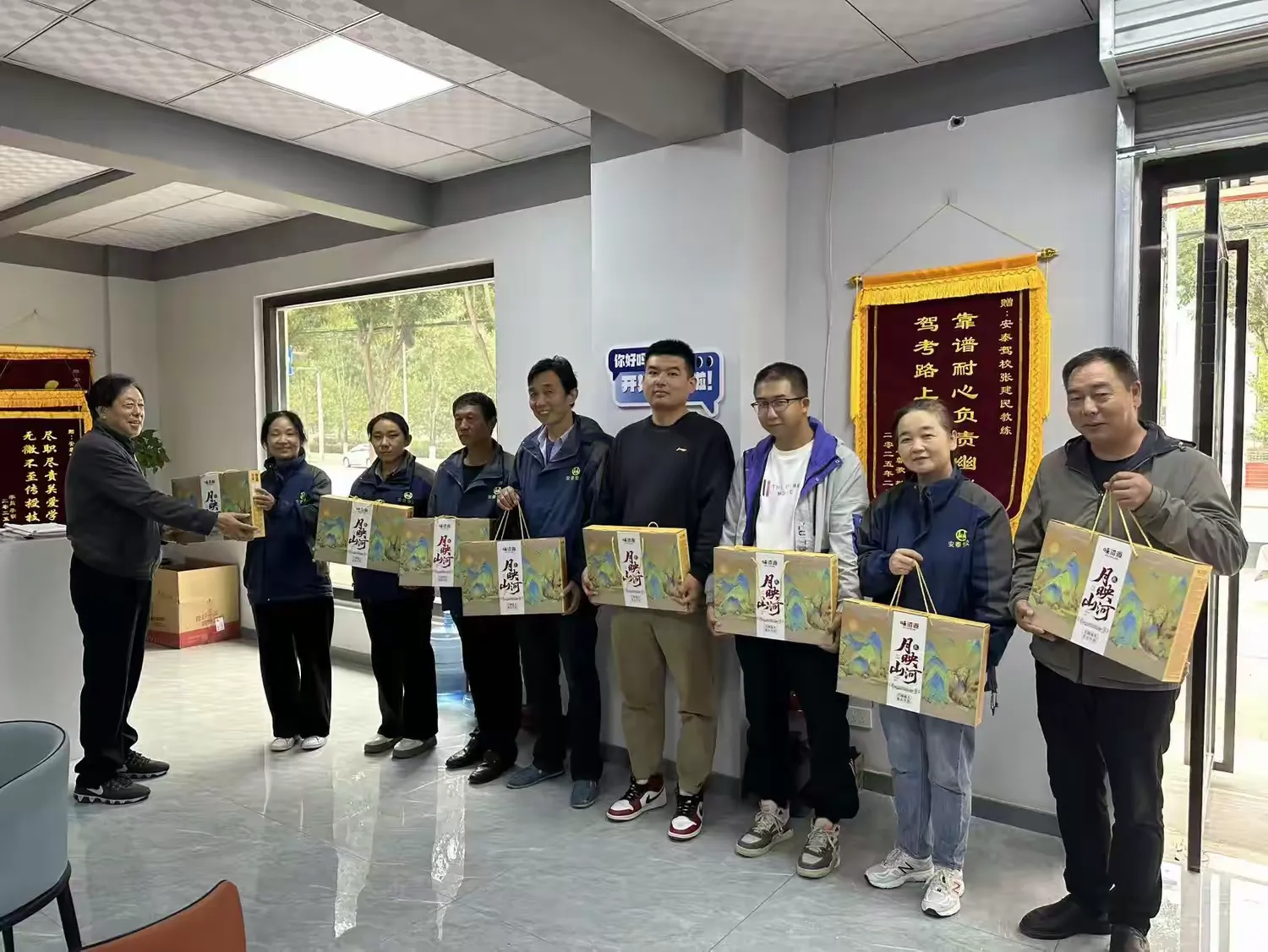 活動(dòng)現(xiàn)場(chǎng)暖意融融,一箱箱滿載心意的中秋福利整齊擺放,內(nèi)含象征團(tuán)圓的月餅禮盒。駕校校長(zhǎng)胡云東和副校長(zhǎng)王孝親自到場(chǎng),與管理團(tuán)隊(duì)一同為教練員、工作人員、后勤保障等各崗位員工發(fā)放福利!敖叹殏兤饺绽镯斨諘裼炅軒Ы,工作人員守著本職崗位服務(wù)學(xué)員,辛苦了!”胡校長(zhǎng)在發(fā)放過程中與員工親切交談,詳細(xì)詢問大家的工作近況與生活需求,他表示,駕校的每一份成績(jī)都離不開全體員工的并肩奮斗,希望這份中秋福利能讓大家感受到“駕校大家庭”的溫暖,也祝愿大家中秋安康、闔家幸福。 活動(dòng)現(xiàn)場(chǎng),歡聲笑語(yǔ)。收到福利的員工們臉上洋溢著喜悅的笑容,紛紛表示這份福利既貼心又實(shí)在。老員工李教練拿著福利箱說道:“每年中秋集團(tuán)董事長(zhǎng)王維建和駕校胡校長(zhǎng)都記掛著我們,心里特別暖!接下來肯定會(huì)更用心帶好每一位學(xué)員,不辜負(fù)這份信任!蹦贻p員工們也表示,將把這份關(guān)懷轉(zhuǎn)化為工作動(dòng)力,以更飽滿的熱情做好學(xué)員服務(wù),助力駕?诒偬嵘。 此次中秋福利發(fā)放,不僅讓安泰駕校的員工們感受到了節(jié)日的祝福與企業(yè)的人文關(guān)懷,更凝聚了人心、鼓舞了士氣。未來,安泰駕校將繼續(xù)秉持“以人為本”的理念,在提升教學(xué)質(zhì)量與服務(wù)水平的同時(shí),持續(xù)做好員工關(guān)懷工作,攜手全體員工共筑駕校發(fā)展新篇章。