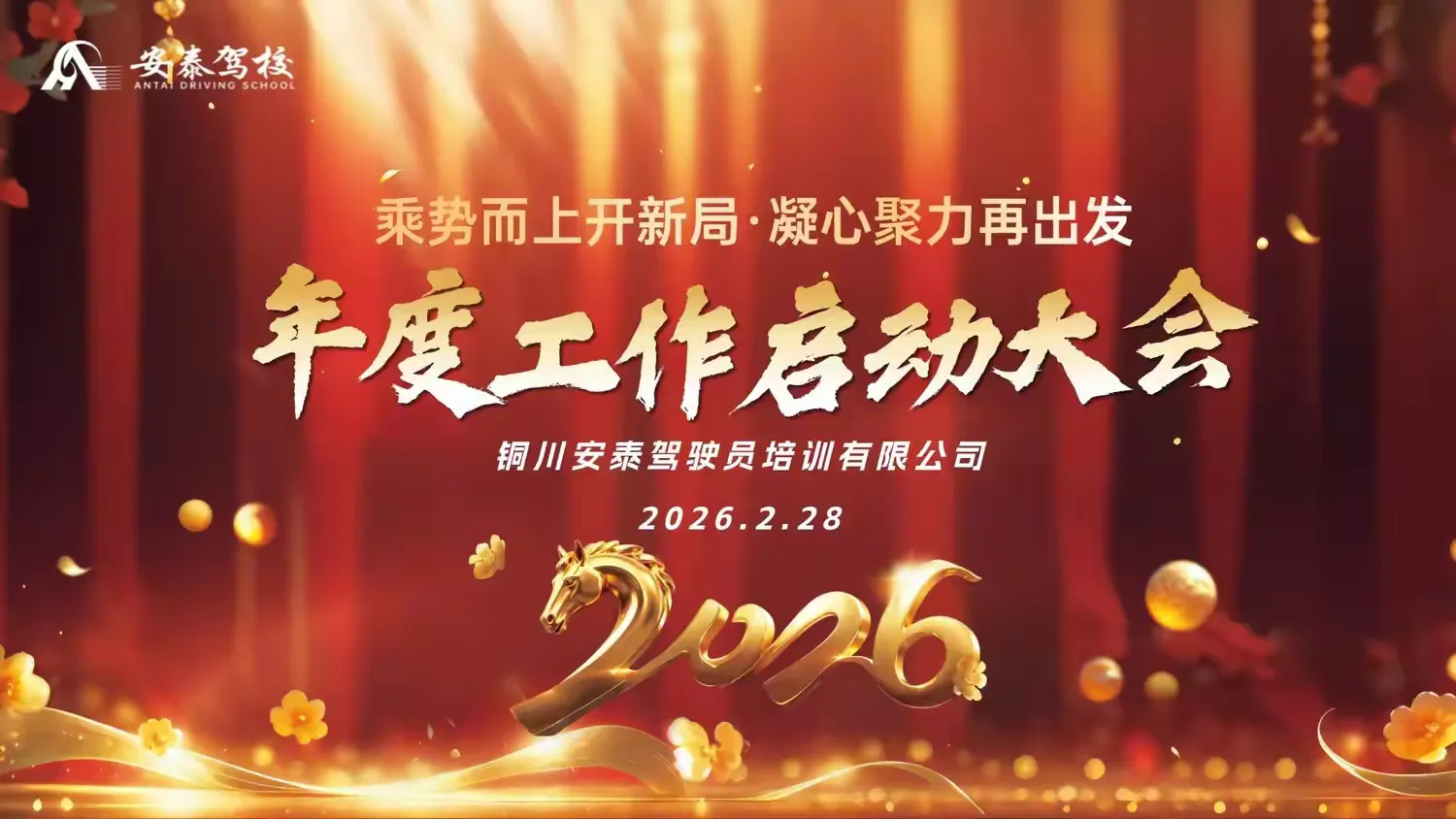乘勢而上開新局,凝心聚力再出發(fā) —安泰駕校2026年工作啟動大會时间:2026-03-01 【原创】 春啟新程,奮進正當時。為明確2026年工作目標,凝聚團隊力量,部署年度重點任務,鼓舞全體員工干事創(chuàng)業(yè)的精氣神,2月28日,銅川安泰駕駛員培訓有限公司召開2026年工作啟動大會,回顧過往成就,明確新年發(fā)展方向。安泰駕校、新區(qū)分校、昇順考場、宇翔智飛科技全體教職工50余人參加會議,現(xiàn)場氛圍莊重而熱烈,彰顯出駕校上下銳意進取的決心。會議由駕校黨支部書記、校長胡云東主持召開。 會議開始,駕校黨支部書記、校長胡云東客觀總結去年成績,明確指出下一步工作計劃;赝2025年,我校在智慧AI駕駛培訓,無人機培訓籌備,品牌力打造等方面取得顯著成效。但當前駕培行業(yè)競爭愈發(fā)激烈,政策持續(xù)革新,低空經(jīng)濟發(fā)展機遇與行業(yè)挑戰(zhàn)并存。2026年是我校持續(xù)深化智慧轉型、拓展業(yè)務邊界,提升品牌影響力的關鍵一年。為明確2026年工作方向,細化任務分工,強化落實成效,確保各項工作提質增效,攻堅突破,結合我校實際運營情況,胡云東制定新年工作計劃,計劃圍繞“夯實基礎,深化創(chuàng)新,拓展邊界,提質增效”的核心思路,統(tǒng)籌推進教學,招生,服務,管理,黨建等核心目標工作,推動駕校高質量發(fā)展,力爭在駕培行業(yè)中樹立標桿形象。